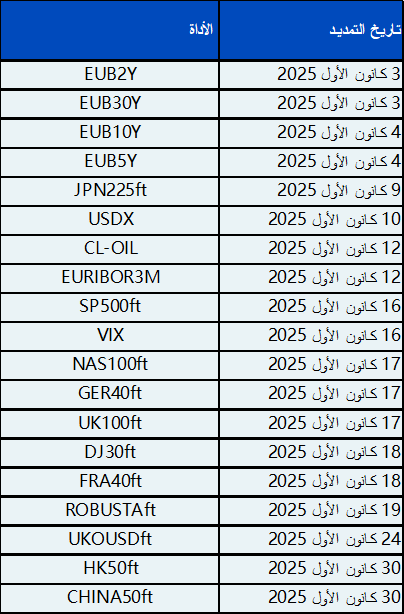 إشعار تمديد العقود مقابل الفروقات لشهر ديسمبر