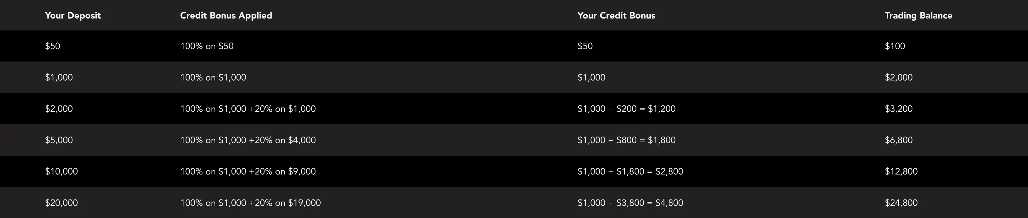 5.Eligible Clients (both new and existing clients), who meet the criteria set forth herein are able to receive credit bonuses or otherwise known as trading credit, equal to: