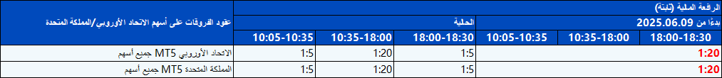 يُرجى الرجوع إلى الجدول أدناه لتعديل عقود الفروقات على أسهم الاتحاد الأوروبي/المملكة المتحدة:
