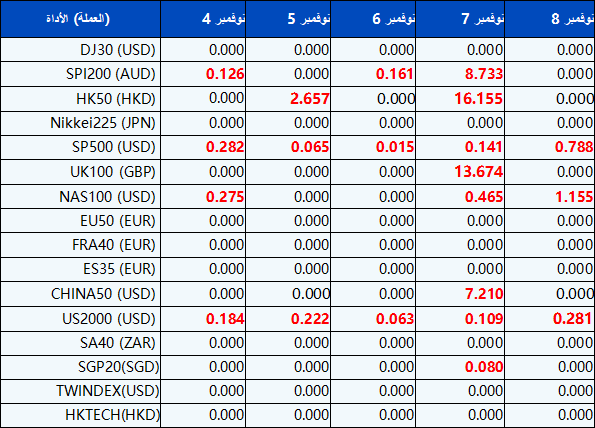 يرجى العلم أن ساعات التداول وأوقات جلسات السوق للأدوات التالية ستتأثر بالعطلات القادمة في شهر نوفمبر.