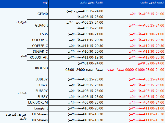إذا كنت تستخدم مستشارًا آليًا/مؤشرًا يتطلب إدخال ساعات التداول يدويًا، يُرجى التأكد من إجراء التعديلات اللازمة لتعكس هذا التغيير.