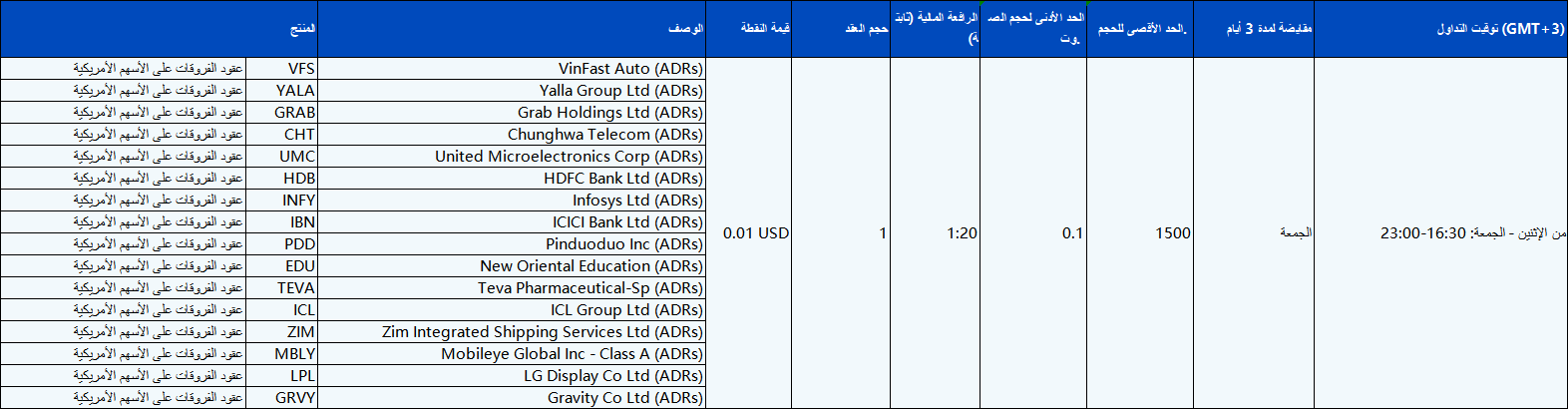 نحن سعداء بالإعلان أن ستقوم PU Prime بإطلاق منتجات جديدة من عقود الفروقات على شهادات الإيداع الأمريكية (ADR) للأسهم الأمريكية على خادم MT5 ابتداءً من 28 أكتوبر 2024 لتزويد العملاء بمحفظة أوسع من المنتجات.