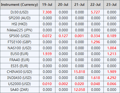 Please be advised that the dividends of the following index CFDs will be adjusted by upcoming ex-dividend dates. The comment for trading index CFDs will be in the following format “Div&<Product Name>&<Net Volume>” which show in the balance after the close of the day before the dividend payment date.