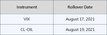 • Positions that are open on the expiration date will be adjusted via a rollover charge or credit to reflect the price difference between the expiring and new contracts.