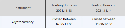 Please be advised that the trading hours and market session times of the following instruments will be closed on 13th and 14th November 2021.