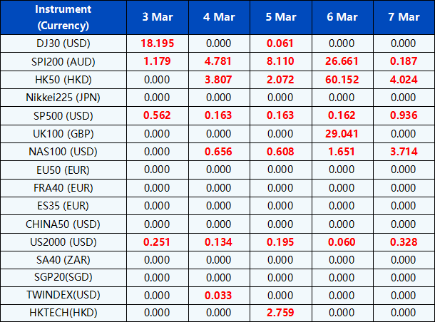 Please be advised that the dividends of the following index CFDs will be adjusted by upcoming ex-dividend dates. The comment for trading index CFDs will be in the following format “Div&<Product Name>&<Net Volume>” which show in the balance after the close of the day before the dividend payment date.