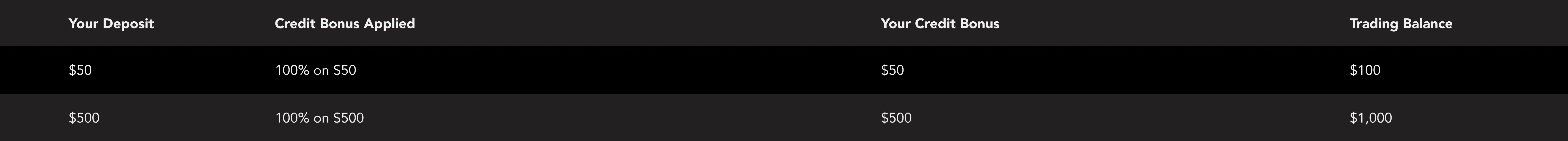 7.Eligible Clients (both new and existing clients), who meet the criteria set forth herein are able to receive credit bonuses or otherwise known as trading credit, equal to: